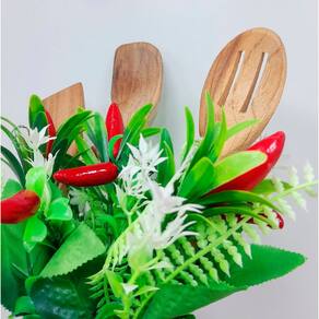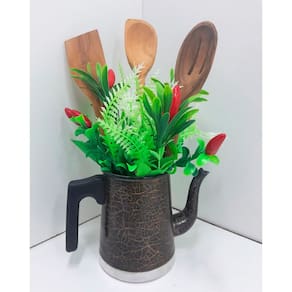 Decore e Encante com Estilo e Funcionalidade. Transforme qualquer ambiente com a beleza e a versatilidade do nosso Vaso Regador de Alumínio com Arranjo e Talheres de Madeira. Perfeito para decorar sua casa, escritório ou qualquer espaço que precise de um toque especial.