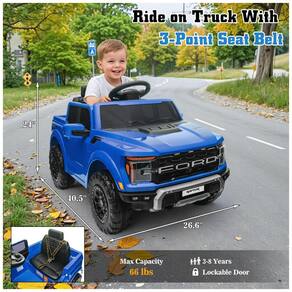 Mini Veículo Elétrico Licenciado Ford F150 Raptor 12V p/ Crianças c/ Controle Remoto, Luz de LED, Som MP3, Caçamba, Cinto 3 Pontos -