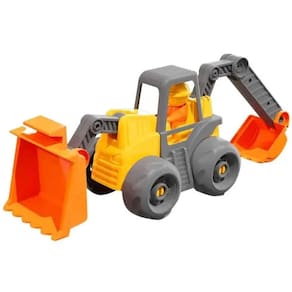 Um trator retroescavadeira super articulado para brincar com os amiguinhos e como se estivesse em uma verdadeira construção.