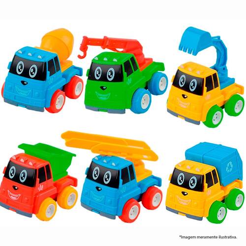 Bem-vindo ao mundo dos caminhões mais irados do pedaço! Com rodas livres e designs incríveis, eles vão levar a diversão para outro nível. Com 6 modelos diversos entre eles tem o Caminhão Retro escavadeira, Betoneira, Caçamba, Lixo Reciclagem, Guindaste e Escada. Todos os carrinhos tem Fricção contínua e com movimentos. Cada carrinho tem o seu movimento. A betoneira gira, o caminhão de lixo abre a porta traseira, a caçamba levanta para despejar o entulho, o guindaste tem movimentos para guinchar, e o caminhão escada tem o movimento de subir e descer a escada. Solte a imaginação, acelere a diversão e deixe a brincadeira rolar solta com esses carrinhos de plástico cheios de energia!
