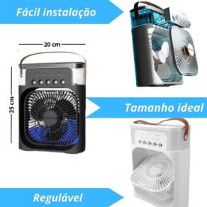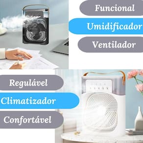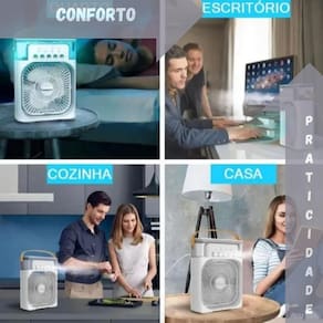 Posso regular a intensidade do vento Resposta: sim, ele tem a opção de 3 velocidades. Qual é a voltagem dele Resposta: ele é bivolt, funciona em todos os locais do brasil. O produto possui função sleep desligamento automático Resposta: sim, tem um timer com a função para programar 1, 2 ou 3 horas para desligar. Ele é giratório Resposta: sim, ele pode ser posicionado manualmente para cima e para baixo. O produto consome muita energia Resposta: não, o produto exige pouca energia para funcionamento. Qual a quantidade de água suportada em seu recipiente Resposta: a capacidade do mini climatizador de ar é de 600ml. Qual é o alcance da ventilação Resposta: o alcance gira em torno de 5 metros, mas o mesmo climatiza o ar quando o ambiente está fechado. Marca: AL Ean: 7894952905659