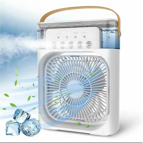 Mini Ventilador Climatizador Silencioso Portátil com Água Ventilação e Umidificação em Um Só Aparelho: Refresca e umidifica o ar, criando um ambiente mais agradável e saudável. Portátil e Recarregável: Leve e fácil de transportar, ideal para o uso em casa, no trabalho, no parque ou durante viagens. Eficiência Energética: Tecnologia avançada para garantir frescor duradouro e economia de energia. Materiais Duráveis: Desenvolvido com materiais de alta qualidade para uma longa vida útil. CARACTERÍSTICAS: Material: Plástico ABS resistente. Capacidade do Tanque: 800 ml. Autonomia: Até 12 horas de uso contínuo. Potência: 10 W. Tamanho Compacto: Ideal para uso em diferentes ambientes. INCLUSO NO PACOTE: 1x Mini Ventilador e Umidificador de Ar Portátil 1x Cabo de Alimentação USB 1x Manual de Instruções