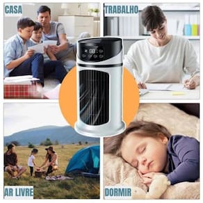 Observação: Este produto é um ventilador de ar condicionado, não um ar condicionado tradicional. Ele oferece uma solução eficiente e econômica para melhorar o clima do seu ambiente, especialmente em dias quentes, com a adição de água ou cristais de gelo para aumentar o frescor.