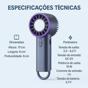 Descubra a refrigeração portátil que une tecnologia avançada, praticidade e design moderno. Com tamanho compacto 17 cm x 6 cm x 6 cm , este mini ventilador sem hélice é perfeito para proporcionar frescor em qualquer lugar, seja em casa, no escritório ou ao ar livre.