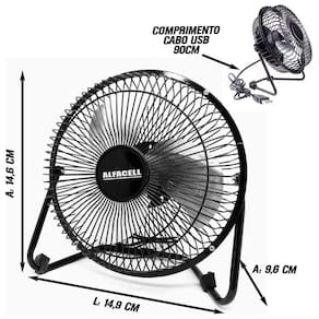 Mini ventilador de mesa preto usb marca alfacell 4 polegadas Bem vindo a nossa loja A lualki store tem os melhores produtos para seu uso. Se atentamos para total satisfação do cliente. Todos nossos produtos tem e acompanha nota filscal. Ventilador de mesa usb alfacell com botão liga e desliga, plug usb, ventilação potente, leve e compacto, 4 polegadas inclinação regulável. Ventilador mesa metal 15cm c/usb cx dados técnicos Referencia: al12005 Embalagem: 1 unidade Composição: plástico / metal Potência: 2w voltagem: 5v Alimentação: usb Dimensão da embalagem: 15x15x8,5cm Dimensão do produto: 15cm Código de barras: 7899790918892 Peso do produto: 188 gramas É necessária montagem: não Tens inclusos 1 ventilador de mesa c/usb Marca alfacell Cor: preto e prata Design de ventilador elétrico ventilador de mesa Fonte de alimentação alimentado por bateria Tipo de quarto sala de estar Características especiais alta velocidade, portátil Tipo de montagem sobre a mesa Tipo de controlador controle de botão Material alumínio, metal Tipo de acabamento polido Nunca introduza o dedo ou qualquer objeto através das grades de proteção da hélice. Produto não resistente a água, limpe as peças apenas com um pano úmido enquanto o produto estiver desligado e com o plug desconectado. Mantenha o aparelho fora do alcance de crianças. Ean: 7894572504072