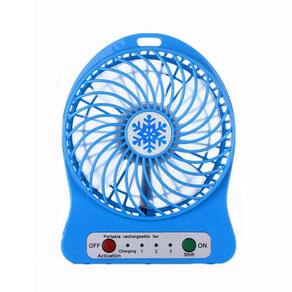 Especificações: Tipo: Mini Ventilador Portátil Fan Modelo: F95 Peso: 90g Peso bateria: 35g Material estrutura e pás: Plástico resistente Dimensões aproximadas ALP: 14cm x 10,5cm x 3,4cm Paletas: 4 Conexão: USB Entrada: 5V 0.5 a 1A Saída: 5 a 9V Potencia: 4,5W Bateria: lítio 18650 3.7V Velocidades: 3 Lâmpada: Sim Tempo de recarga: até 5 horas Cor: Azul
