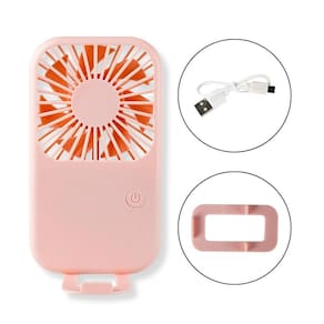 Contém: 01 - mini ventilador rosa 01 - cabo carregador 01 - suporte para o ventilador