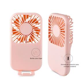 Contém: 01 - mini ventilador rosa 01 - cabo carregador 01 - suporte para o ventilador