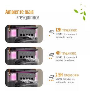 Mini ventilador umidificador climatizador portátil 110v/220v Você pode usar o pequeno refrigerador de ar evaporativo durante todo o ano, resfriando-o no verão quente e umidificando o ar no outono e inverno secos. Um tanque cheio de água pode continuar pulverizando continuamente por 2,5 a 12 horas dependendo da velocidade . Velocidades de vento ajustáveis e temporização automática: 3 velocidades de vento alta, média, baixa podem ser ajustadas manualmente para cima e para baixo para ajustar a direção do sopro dentro de 60 c para atender às suas diferentes necessidades. Três horários automáticos 1/2/3h , você pode escolher o mais adequado para aproveitar seu tempo livre, dormir ou trabalhar. 7 luzes coloridas e baixo ruído: o ventilador de névoa tem 7 cores suaves e 1 opção de desbotamento no total. Coloque-o na sala de jantar ou na mesa de centro para criar uma atmosfera romântica. O ventilador de mesa pode funcionar poderosamente com baixo ruído, permitindo que você desfrute de um sono confortável a noite toda com a temperatura certa. Design removível e design de alça: o design removível ajuda você a limpar mais facilmente seu tanque de água e adicionar água e cubos de gelo no recipiente de água; alça portátil, você pode carregá-la facilmente, muito adequada para residências, escritórios, piqueniques ao ar livre, etc. Fonte de alimentação e métodos de economia de energia: basta conectar o cabo usb aos dispositivos que suportam a porta usb. Além disso, o ventilador de ar portátil opera com baixo consumo de energia, portanto, você não deve esperar os mesmos resultados de um ar condicionado. Características do produto: Tipo de luz: 7 luzes led Funções: ventilador / umidificador / aromatizador Tempo de pulverização: 2,5h - 12h modo umidificador Temporizador: pode desligar em 1h, 2h ou 3h Cuidados: não desmonte o produto; evite deixar cair no chão; Ficha técnica: Peso: 726g aprox. Potência: máx.10w Tensão: 5v Corrente: 2a Capacidade do reservatório de água: 600ml Tipo de conexão: usb tipo c O que vem na caixa: 1 mini ventilador portátil 1 cabo de alimentação 1 manual de instruções Cores conforme disponibilidade em Marca: Não Informado