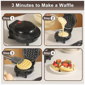 Mini Waffle Maker 4 em 1 com 8 placas removíveis (tradicional, coração, donut, panqueca), controle automático de temperatura, indicador de pré-aquecimento, design compacto e chapa antiaderente de 4,5 polegadas.Porta-fio