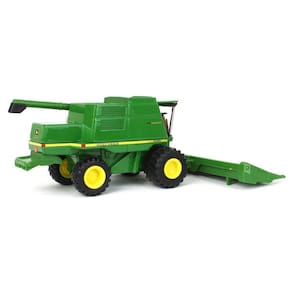 Feito por ERTL Construção em metal fundido com algumas peças de plástico Rodas de borracha As cabeças de grãos e milho são destacáveis, permitindo personalização e diferentes opções de exibição. A cabine possui janelas transparentes Trado de descarga giratório e interior detalhado da cabine