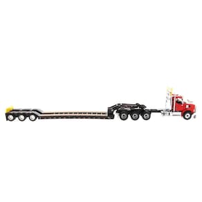 Novo modelo fundido em escala 1/50 do trator de transporte pesado Western Star 49X SBFA Tridem Axle com reboque HDG de baixo perfil XL 120 Modelo fundido em molde vermelho e preto "Série de transporte" da Diecast Masters. Caixa totalmente nova. Pneus de borracha de verdade. Interior detalhado, exterior. Produto oficialmente licenciado. Réplica de metal fundido pesado. Compartimento do motor detalhado. Detalhe preciso da banda de rodagem e do aro do pneu. Feito em metal fundido com algumas peças de plástico. Abrindo portas revelando o interior detalhado. Tratamentos de logotipo autênticos e outras marcas de marca. Abrindo o capô revelando o detalhe do motor diesel Detroit. A fixação do pescoço articulado no pescoço de ganso do reboque cria maior folga de giro. Reforços de eixo único e de eixo tandem incluídos para fixação opcional na parte traseira do trailer. Embalagem da série Transport: Embalagem premium estilo caixa deslizante impressa com gráficos coloridos e especificações de caminhões e reboques reais, um nível de embalagem que os colecionadores passaram a valorizar em todos os produtos Diecast Masters.