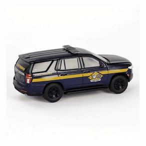 Este modelo da Greenlight homenageia os 100 anos da Polícia Estadual de Delaware com uma versão especial do Chevrolet Tahoe 2023 em configuração de veículo de perseguição policial. Integrante da Série 16 da coleção Anniversary Collection, esta miniatura em escala 1:64 com aproximadamente 7 cm de comprimento celebra a tradição e o serviço público com detalhes autênticos e acabamento de alta qualidade.