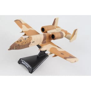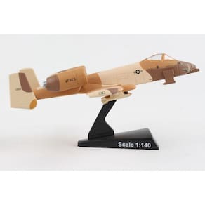 Durante o final da década de 1960, a Força Aérea dos Estados Unidos encomendou uma nova aeronave de apoio aéreo aproximado. O A-10 é um monoplano de asa baixa cantilever todo em metal. O cockpit fechado está bem à frente das asas e o pára-brisa à prova de balas protegia o piloto com uma estrutura de banheira de titânio. O A-10 foi projetado para resposta de curto prazo contra veículos blindados inimigos. A principal característica do avião é um canhão do tipo GAU-8/A Avenger Gatling de 30 mm montado no nariz. Um dos canhões de aeronaves mais poderosos já voados. Ele dispara grandes projéteis perfurantes de armadura de urânio empobrecido. Este modelo de avião de metal fundido vem em escala 1:140 com suporte de plástico