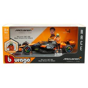 Miniatura Bburago Miami Grand Prix McLaren F1 MCL38 2024 Lando Norris 4 1/24 c/ Boneco