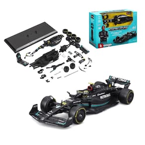 O kit em metal para montar do Mercedes-AMG W14 2023 da BBurago, com piloto Lewis Hamilton, faz parte da coleção Racing e oferece uma experiência interativa para fãs da Fórmula 1. Com pintura preta elegante e peças detalhadas, este modelo em escala 1:24 é ideal para colecionadores que valorizam montagem, precisão e o universo da F1.