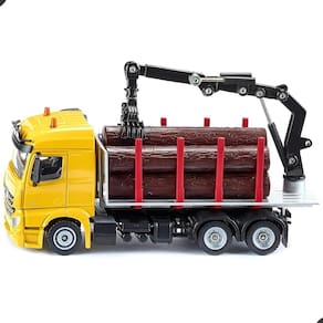 Entre no mundo da silvicultura e do transporte pesado com a impressionante Miniatura Siku 2714 Mercedes-Benz Arocs Log Transporter Esta réplica em escala 1:50 não é apenas um brinquedo, mas uma peça de engenharia em miniatura que captura a robustez e a funcionalidade dos verdadeiros caminhões madeireiros.