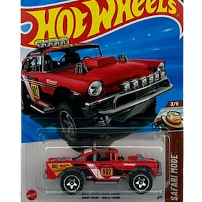 O Big-Air Bel-Air é uma releitura radical do clássico Chevrolet Bel Air, transformado em um verdadeiro monstro off-road na coleção Safari Mode da Hot Wheels. Produzido pela Mattel, este modelo em escala 1:64 combina nostalgia com espírito aventureiro, ideal para quem curte trilhas e adrenalina sobre rodas.