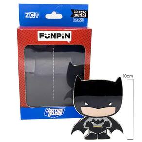 O Funpin Batman é feito de Zamak, um material resistente e durável. Suas dimensões são: altura de 10cm, largura de 8cm e comprimento de 1cm. Com um peso de 100gr, é leve e fácil de transportar.