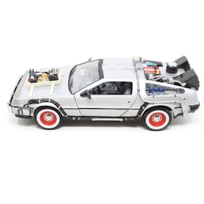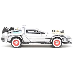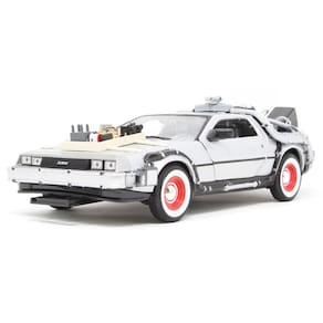 Este modelo da Welly representa o DeLorean DMC-12 como aparece em “De Volta para o Futuro III”, adaptado para operar no Velho Oeste de 1885. Com visual modificado e elementos rústicos, a miniatura em escala 1:24 e com 17 cm de comprimento completa a trilogia cinematográfica com fidelidade e estilo.