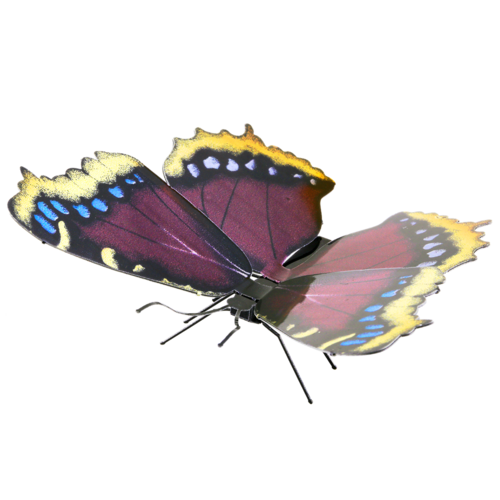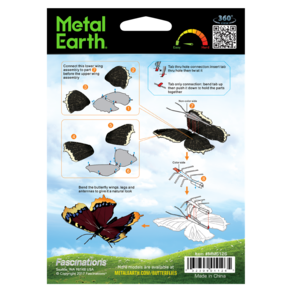 A Metal Earth é uma coleção de kits de construção de miniaturas intrincadamente projetados! Cada kit consiste em gravações a laser de alto detalhe, cortadas em uma ou mais folhas quadradas de metal fino de alta qualidade. Simplesmente encaixe as peças, dobre as abas para juntá-las e crie réplicas altamente detalhadas que cabem na palma da sua mão! Nesta miniatura Metal Earth, você poderá montar uma linda borboleta Mourning Cloak! Não perca essa oportunidade de botar a mão na massa e construir um lindo objeto decorativo!