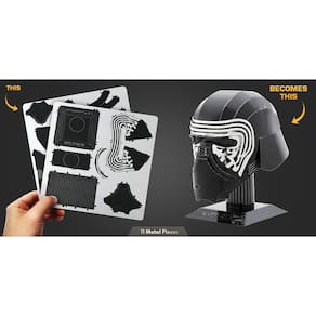 A Miniatura de Montar Metal Earth - Star Wars - Capacete Kylo Ren (MMS319) te convida a se tornar o líder da Primeira Ordem e construir essa peça icônica e poderosa, símbolo da força e da obsessão do personagem. Com design fiel ao capacete de Kylo Ren dos filmes Star Wars, processo de montagem desafiador e um resultado final impressionante, esta miniatura é perfeita para fãs de Star Wars, colecionadores e entusiastas de modelismo em metal.