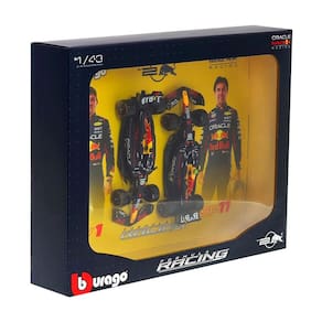 Um verdadeiro espetáculo para os fãs da Fórmula 1 e admiradores da equipe Red Bull Racing, este pack da BBurago traz as miniaturas dos carros de Max Verstappen e Sergio Pérez da temporada 2024. Com design refinado e atenção aos detalhes, essas réplicas capturam toda a emoção das pistas em escala reduzida.
