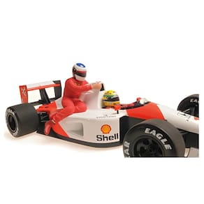 Reviva um dos momentos mais icônicos da Fórmula 1 com esta incrível miniatura do McLaren Honda MP4/6, carro pilotado por Ayrton Senna no histórico Grande Prêmio do México de 1991, em uma cena especial ao lado de Jean Alesi. Esta miniatura representa mais do que um carro é um tributo à genialidade de Ayrton Senna e à era dourada da Fórmula 1 nos anos 90. Um item indispensável para apaixonados pelo automobilismo e para quem valoriza momentos históricos do esporte. Perfeita para exposição, presente especial ou para completar sua coleção com um dos carros mais icônicos da carreira de Senna.