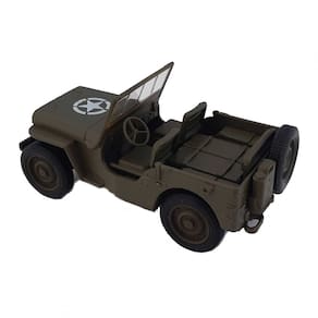 Miniatura Jeep Willys 1941 Militar 1/32. produzida em metal com detalhes em plástico, apresenta alto grau de detalhamento, pneus de borracha, abertura das portas.