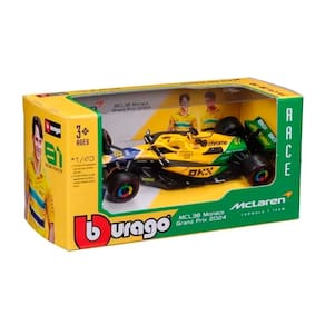 Uma homenagem veloz à lenda! A miniatura especial do MCL38 2024 Monaco/Senna Edition, pilotado por Oscar Piastri (#81), celebra os 30 anos do legado de Ayrton Senna com um toque emocional e histórico. Produzida pela BBurago na linha Racing, essa peça exclusiva em escala 1:43 traz o carro da McLaren com pintura amarela vibrante, evocando a icônica paleta do capacete do tricampeão mundial — tudo sem piloto no cockpit, ideal para destacar o estilo e significado da homenagem.