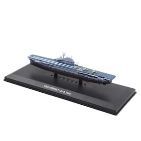 Especificações Técnicas: Modelo: USS Hornet CV-8 Escala: 1/1250 Material: Estrutura principal: Metal fundido (diecast) Componentes e aviões: Plástico de alta qualidade Dimensões Aproximadas: Comprimento: 21,5 cm Largura: 3,5 cm Altura: 4,8 cm Peso: Aprox. 250 g Pintura: Esquema camuflado cinza naval dos EUA, com marcações históricas do porta-aviões. Ean: 0687312231898