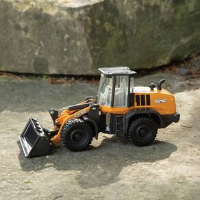 Construção em Metal Fundido: Corpo frontal e traseiro, braços de elevação e caçamba fabricados em die-cast para máxima durabilidade e peso realista. Totalmente Articulada: Chassi com articulação central que permite movimentos de direção realistas, assim como a máquina verdadeira. Operação da Caçamba: Os braços da carregadeira levantam e abaixam, e a caçamba se inclina para simular operações de carga e descarga. Cabine Detalhada: Janelas transparentes que oferecem uma visão clara do interior detalhado, com assento e controles do operador. Pneus de Borracha: Pneus de borracha macia com desenho autêntico, montados em rodas de plástico, garantindo uma aparência fiel.