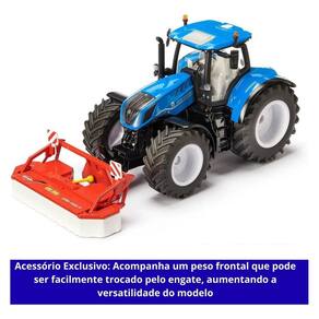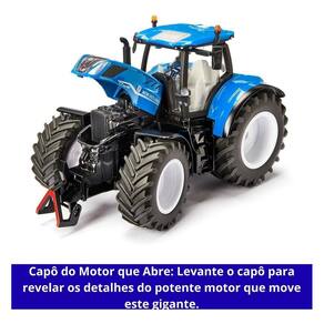 Construído sobre um chassi de metal robusto, este modelo foi feito para durar e impressionar. A icônica cor azul da New Holland é reproduzida com perfeição, e cada detalhe, desde a cabine envidraçada até os pneus de borracha com sulcos realistas, foi pensado para satisfazer os colecionadores mais exigentes e os jovens entusiastas do agronegócio.