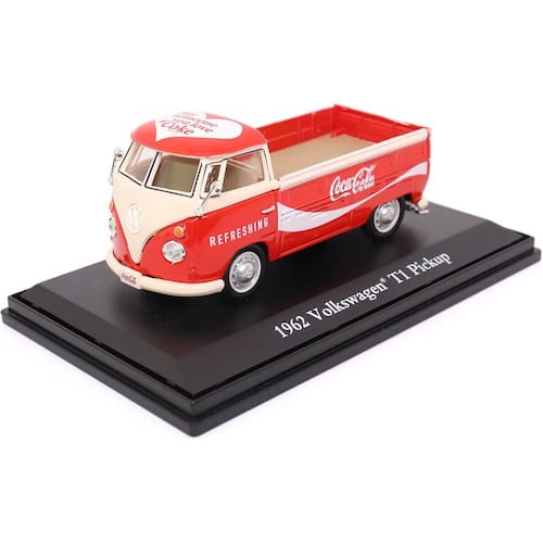 Reviva a nostalgia da era de ouro da Coca-Cola com esta réplica impecável da icônica Volkswagen T1 Pickup de 1962, adornada com a logo da Coca-Cola, na escala 1:43. Uma peça imperdível para colecionadores, fãs de carros e entusiastas da Coca-Cola!