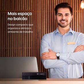 O Nano300 i3-1215U é um minicomputador compacto indicado para aplicações comerciais e corporativas. Pode ser utilizado em pontos de atendimento e terminais de autoatendimento, ocupando espaço reduzido.