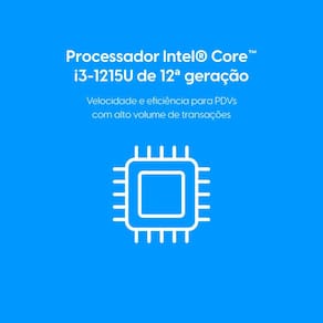 Conta com processador Intel® Core™ i3 de 12ª geração, com 6 núcleos e frequência de até 4,4 GHz. Possui consumo de energia de 15W, adequado para operação contínua.