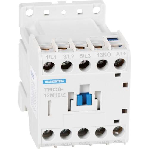 Minicontator Tripolar Tramontina Trc8-12m01/z 12a 24vcc 1na Minicontator Tripolar Tramontina TRC8-12M01/Z 12A 24VCC 1NA Os minicontatores são destinados ao acionamento remoto de equipamentos elétricos, principalmente motores trifásicos. Os minicontatores Tramontina apresentam elevada robustez e confiabilidade, podendo ser aplicados em automações industriais, acionamento de bombas d?água, acionamento de sistemas de iluminação entre outras. A linha de minicontatores TRC8 está disponível na faixa de corrente de 6A a 12A, com tensão de comando em sistema VCC, além de dispor de contatos auxiliares integrados.