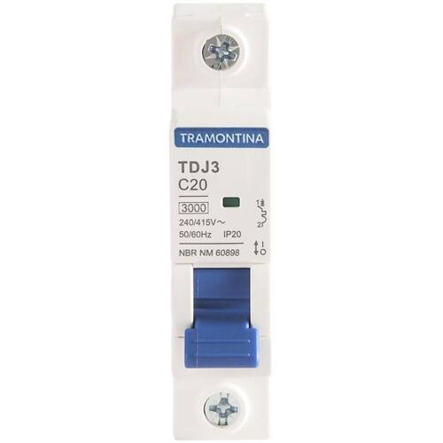 Minidisjuntor Tdj3ka 1 P 20 A Curva C Tramontina Minidisjuntor TDJ3kA 1 P 20 A curva C Tramontina Leve alta qualidade para seus projetos elétricos, com o minidisjuntor TDJ3kA 1 P 20 A curva C Tramontina. Desenvolvido para garantir a segurança da instalação ele preserva a rede elétrica e seus equipamentos em caso de sobrecarga ou curto-circuito. Ele possui janela de inspeção do estado, é instalado no quadro de distribuição e dimensionado de acordo com a potência dos equipamentos, números de tomadas e quantidade de lâmpadas. Sua montagem é individual, sem a necessidade de desmontar o barramento, o que otimiza o tempo de instalação. Um item com a qualidade Tramontina, que você já conhece e confia!
