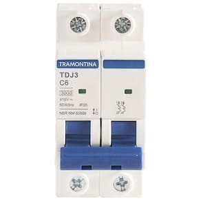 Minidisjuntor Tdj3ka 2 P 6 A Curva C Tramontina Minidisjuntor TDJ3kA 2 P 6 A curva C Tramontina Garanta o melhor para seus projetos elétricos, com o Minidisjuntor TDJ3kA 2 P 6 A curva C Tramontina. Desenvolvido para garantir a segurança da instalação, ele preserva a rede elétrica e seus equipamentos em caso de sobrecarga ou curto-circuito. Ele possui janela de inspeção do estado, é instalado no quadro de distribuição e dimensionado de acordo com a potência dos equipamentos, números de tomadas e quantidade de lâmpadas. Sua montagem é individual, sem a necessidade de desmontar o barramento, o que otimiza o tempo de instalação. Um item com a qualidade Tramontina, que você já conhece e confia!
