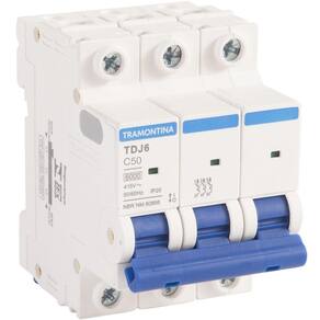 Minidisjuntor Tdj6ka 3 P 50 A Curva C Tramontina Minidisjuntor TDJ6kA 3 P 50 A curva C Tramontina Leve o melhor para seus projetos elétricos com o Minidisjuntor TDJ6kA 3 P 50 A curva C Tramontina. Desenvolvido para garantir a segurança da instalação, ele preserva a rede elétrica e seus equipamentos em caso de sobrecarga ou curto-circuito. Ele é instalado no quadro de distribuição e dimensionado de acordo com a potência dos equipamentos, números de tomadas e quantidade de lâmpadas. Sua montagem é individual, sem a necessidade de desmontar o barramento, o que otimiza o tempo de instalação. Além disso, possui indicador de liga e desliga que informa o seu status de funcionamento caso a manopla esteja travada. Um item com a qualidade Tramontina, que você já conhece e confia!