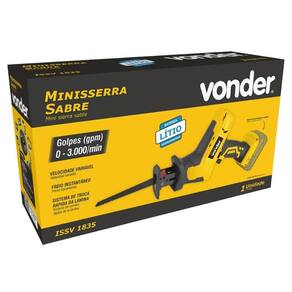Marca: VonderConteúdo da embalagem: 1 Minisserra sabre. Acompanha: 1 lâmina de corte para madeira.Destaques e diferenciais:Este equipamento utiliza um modelo de bateria que pode ser intercambiável não acompanha , ou seja, uma bateria que é compatível com outros modelos de ferramentas a bateria VONDER. Por isso, em sua próxima compra de ferramenta a bateria VONDER, procure um modelo que comece com a referência I, ou que esteja identificado com o selo Bateria Intercambiável VONDER. Desta forma, você garante modelos mais econômicos, sem a necessidade de aquisição de novas baterias e carregadores para uso em seu equipamento. Possui cabo com revestimento emborrachado, proporcionando maior conforto ao operador. Conta com velocidade variável, freio instantâneo e sistema de troca rápida da lâmina, não sendo necessário o uso de chaves.Dicas de uso:Ideal para serrar madeira, plástico e metal, sempre usando a lâmina apropriada.