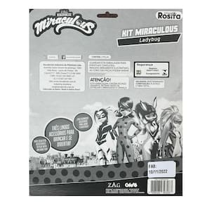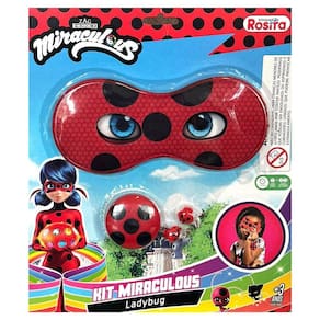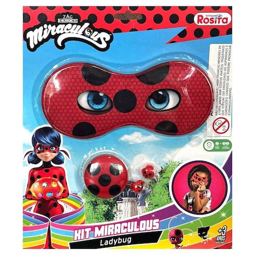 Miraculous Ladybug máscara, io-io, brinco joaninha RositaAs crianças irão se apaixonar por esse super Kit da Ladybug, contendo:- máscara resistente em tecido acolchoado - io - iô- brinco de pressão plástico não necessita furo na orelhaTipo de embalagem: blister