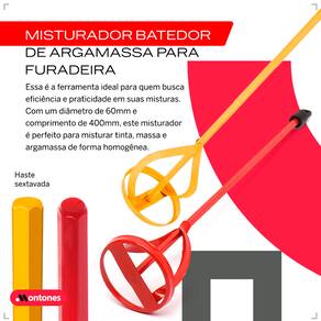 O Misturado batedor para furadeira é uma ferramenta projetada para misturar qualquer tipo líquido e pastoso de materiais como: Argamassa, gesso, cimento, grafiato, sabão, textura, tinta, entre outros.