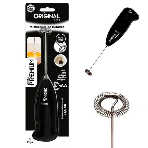 Misturador de Bebidas Café e Leite Prepare suas Bebidas Favoritas Facilmente Basta adicionar o líquido que deseja misturar na caneca ou copo, apertar o botão na alça do misturador e pronto, o líquido será misturado de maneira rápida e eficiente. Prático e extremamente durável, o misturador funciona com duas pilhas AA não inclusas , que podem ser encontradas na grande maioria de mercados ou lojas de eletro-ferragens. O mecanismo que permite que o líquido seja misturado é suficientemente forte para que, inclusive, se forme um pequeno redemoinho enquanto o líquido é misturado no interior do recipiente. Ean: 7904991708569