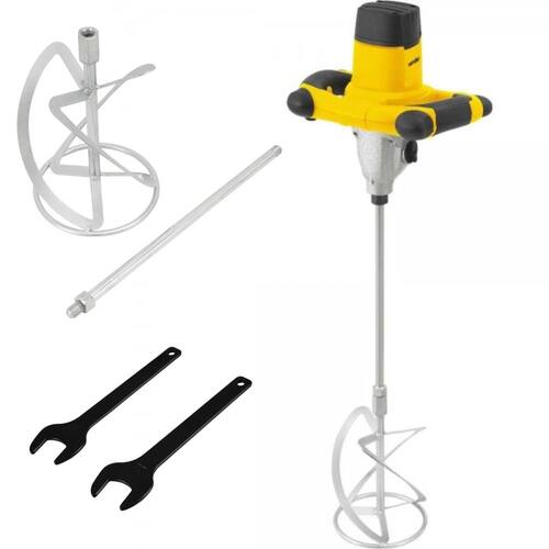 1 Misturador. Acompanha: 1 extensão para pá, 1 pá para misturador e 2 chaves fixas. Possui dupla velocidade (acionamento mecânico), regulador de velocidade eletrônico e cabo com revestimento emborrachado que proporciona maior conforto ao operador. Indicado para misturar argamassa, tinta, gesso, cola, entre outros. Garantia legal: 90 dias + Garantia contratual: 9 meses (Para locadoras, garantia única e exclusiva de 90 dias)