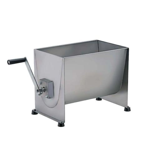 Misturador de Carne Manual 5kg Malta Misturadeira InoxIdeal para misturar carnes e temperos de forma manual e homogeneaFicha Técnica: Cuba em aço inox Pás misturadores em aço inox Capacidade 5kg Sua função é misturar as carnes com condimentos e temperos de forma homogênea. Dimensões: 465mm largura x 235mm profundidade x 300mm alturaFicha técnica- Cor: Inox- Cor: Cinza escuro