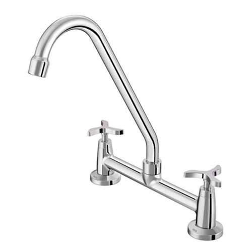 Misturador de Cozinha Pertutti 21125 Bicomando para Bancada em Latão com Acabamento Cromado Bica Móvel Prata