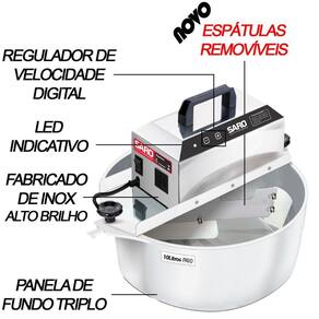 O Misturador Elétrico 10 Litros Bivolt Saro é ideal para preparar variados tipos de doces e massas e também a única com regulador de velocidade digital. Economize seu tempo e torne-se profissional com este equipamento. Este equipamento é o único com led indicativo que lhe ajuda a monitorar a velocidade do equipamento, além da temperatura e esforços demasiados grandes. Sempre que o equipamento detectar alguma anomalia ou esforço muito grande, começará a piscar e lhe avisará que algo não anda bem.CARACTERÍSTICAS:- Única com regulador de velocidade digital integrado.- Possui carenagem Slim 50% mais leve do que a concorrência.- Fabricada 100% de Inox próprio para o contato com o alimento.- Possui espátulas de silicone resistentes a altas temperaturas.- Possui motor de alta tecnologia com placa integrada.- Sistema tecnológico RED-Plus, capaz de aumentar a vida útil do motor e diminuir sua manutenção.ESPECIFICAÇÕES:- Capacidade mínima (doces): 1 caixa de leite condensado.- Capacidade máxima (doces): 20 caixas de leite condensado.- Capacidade máxima (massas): 5kg de massa pronta.- Potência do Motor: 130W- Peso total: 9,4 Kg.- Voltagem: BivoltITENS INCLUSOS:- Panela de alumínio fundido.- Misturadeira de Inox com regulador de velocidade integrado.- Manual de Instruções do UsuárioCódigo de barras:7026537581211 Referência:PA10R Marca:Saro Composição/Material:Aço Inox e Alumínio Dimensões aproximadas do produto (cm) :25x35x35 cmPeso aproximado do produto (kg):8.100 kg Frequência: 50/60 Hz Comsumo Médio:0,18 Kw/H Potência:130 W