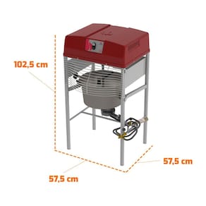 - Com tacho basculante em alumínio fundido e queimador simples chama dupla 120 mm;