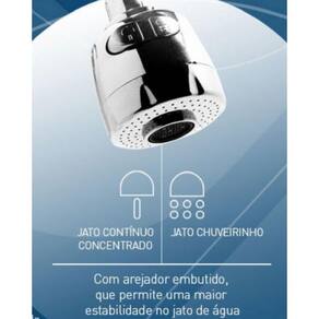 Essa torneira conta com duas opções de jato: contínuo e chuveirinho. Assim, você pode escolher a opção que melhor se adequa às suas necessidades, seja para lavar a louça ou enxaguar os alimentos.